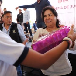 Esta Ruta de la Alegría tuvo la consigna de regalar un juguete por una sonrisa de cada una de las más de mil niñas y niños que se dieron cita en la explanada principal de la cabecera municipal. De esta forma, la presidenta de Patronato del DIFH entregó muñecas, cochecitos y figuras de acción, que las infancias podrán disfrutar y jugar en su día a día.