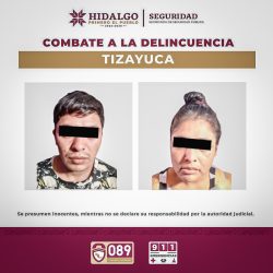 Mediante labores de inteligencia la SSPH, en conjunto con la Procuraduría General de Justicia del Estado de Hidalgo (PGJEH), llevaron a cabo un operativo policial en el fraccionamiento Las Campanas de ese municipio, para cumplimentar una orden de cateo que permitió el aseguramiento de una mujer identificada como A.V.B., así como de un sujeto de nombre L.G.R.S., quienes almacenaban 833 dosis de marihuana.