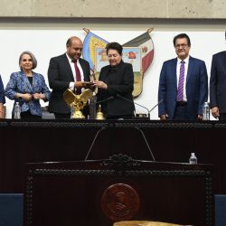 El presidente de la Junta de Gobierno, diputado Osiris Leines, brindó la bienvenida a la sesión solemne, al secretario de Gobierno, Guillermo Olivares Reyna, representante del gobernador del Estado de Hidalgo, Julio Menchaca Salazar, a la presidenta del Honorable Tribunal de Justicia, Rebeca Aladro Echeverría, al presidente municipal de Nopala de Villagrán, Abel de Jesús Rivera, y a personalidades destacadas, así como de la sociedad civil.
