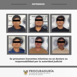 De dicha técnica de investigación resultaron detenidas seis personas de sexo masculino identificadas con iniciales O. G. M., J. R. S. O., I. M. M., E. G. M. M., J. M. G., y D. M. G., quienes serán puestas a disposición de un juez de control del fuero común, autoridad ante la que la que se les formulará imputación y se solicitará su vinculación a proceso por delito contra la salud en su modalidad de narcomenudeo, en su hipótesis de posesión con fines de comercio.