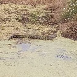 Al lugar arriba personal de Seguridad Pública para apoyar al resguardo, el reptil está en propiedad privada, por lo que se está indagando a quién pertenece el predio y si cuentan con documentación de posesión del caimán.