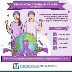 En el 4 de febrero, Día Mundial contra el Cáncer, el Instituto Mexicano del Seguro Social (IMSS) en Hidalgo sensibiliza a la población sobre la importancia de la prevención y el control de esta enfermedad que es una de las principales causas de muerte en México y en el mundo.