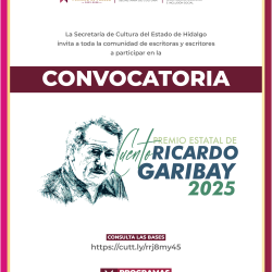 Como parte de las actividades de la XXV Feria del Libro Infantil y Juvenil Hidalgo, el gobierno del estado, a través de la Secretaría de Cultura, convoca a autoras y autores mayores de 18 años a participar en los Premios Estatales de Literatura 2025: Efrén Rebolledo, en la categoría de poesía, y Ricardo Garibay, en la categoría de cuento.