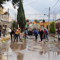 Asimismo, más de 100 trabajadores de la Comisión de Agua y Alcantarillado de Sistemas Intermunicipales (Caasim) participan en labores de supervisión, limpieza y desazolve, con apoyo de tres motobombas para el desfogue de agua acumulada, tres unidades tipo Vactor, 12 unidades de reacción inmediata y traslados, nueve pipas con agua potable, tres retroexcavadoras, un séptico, una unidad de rescate, un camión con plataforma para transporte de material y vehículos de la Policía Hídrica.