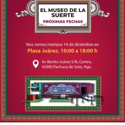 Como parte de su gira, el Museo de la Suerte de Lotería Nacional hará escala este domingo 14 de diciembre en Pachuca, donde las y los visitantes podrán conocer de manera gratuita la historia y el legado de una de las instituciones con mayor tradición en el país.