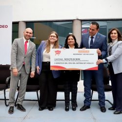 En el marco del 25 aniversario del Centro de Rehabilitación Integral de Hidalgo (CRIH), el Sistema DIF Hidalgo (DIFH) recibió un donativo por 235 mil 170 pesos con 39 centavos, resultado del programa de redondeo “Vecino Bara”, impulsado por Tiendas Bara y Grupo FEMSA.